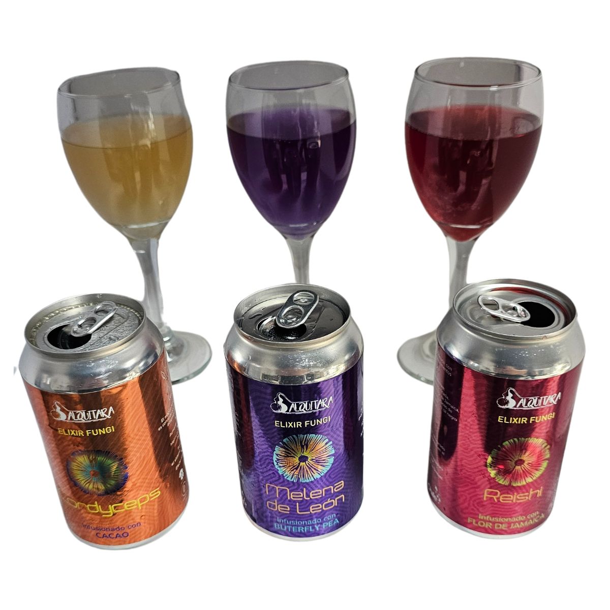 Lleva tu bienestar al siguiente nivel con nuestras innovadoras bebidas funcionales elaboradas con hongos adaptógenos: Melena de León, Reishi y Cordyceps. Cada lata de 355cc combina ingredientes naturales con beneficios comprobados para tu salud, brindándote una experiencia sensorial refrescante, equilibrada y saludable.